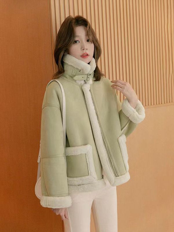 معطف جلدي أسود قصير من القطيفة، موضة شتوية راقية للنساء