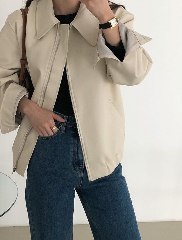 معطف جلدي قصير أنيق للنساء