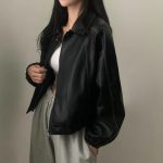معطف جلدي كاجوال بأكمام طويلة للنساء