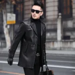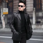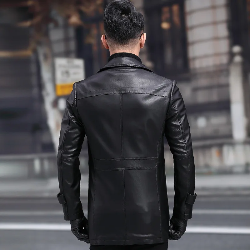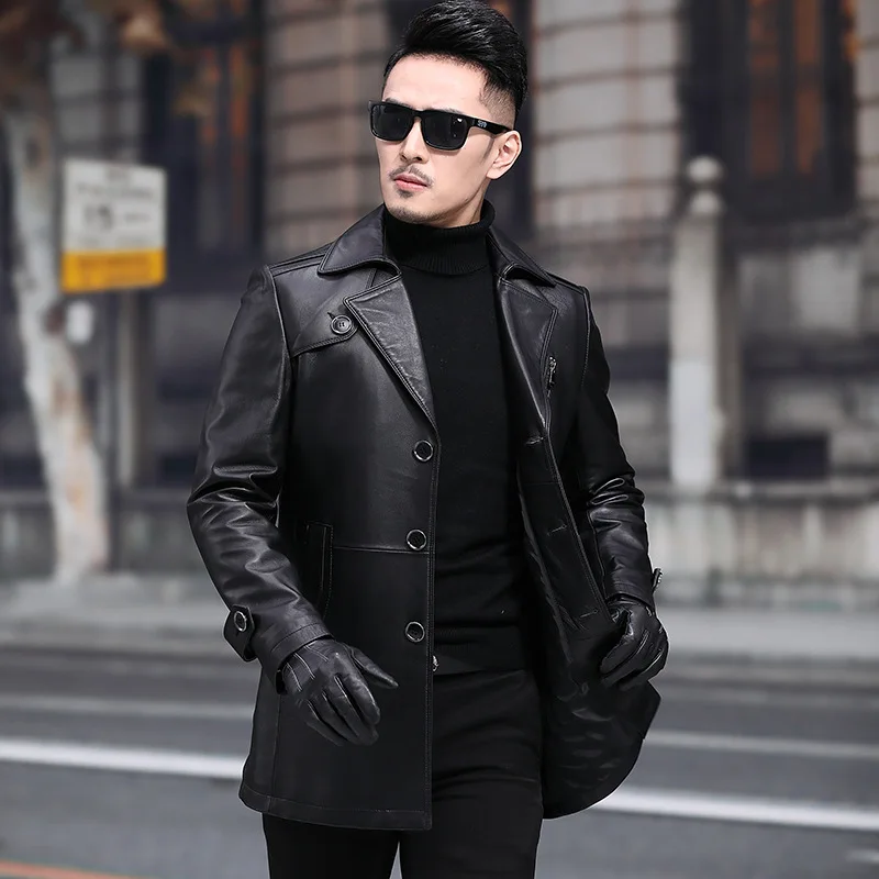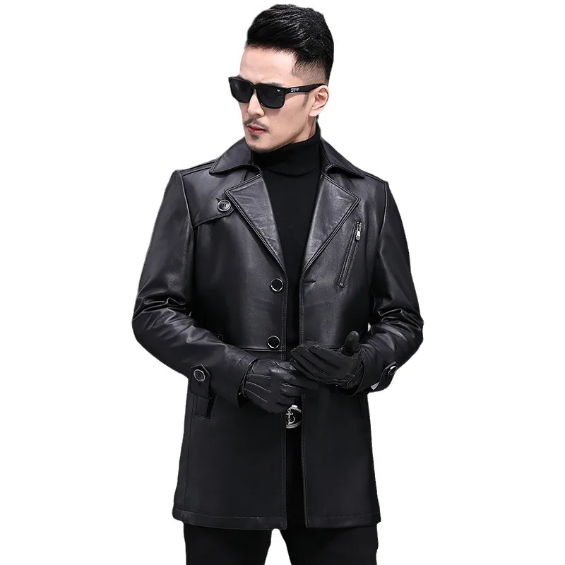 معطف رجالي من جلد الغنم، متوسط الطول، معطف ترنش من الجلد الطبيعي، معطف من جلد البقر، بدلة رجالية، مناسب للعمل، ربيع وخريف، مقاس 5XL