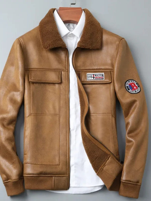 معطف رجالي من جلد الغنم، متوسط الطول، معطف ترنش من الجلد الطبيعي، معطف من جلد البقر، بدلة رجالية، مناسب للعمل، ربيع وخريف، مقاس 5XL