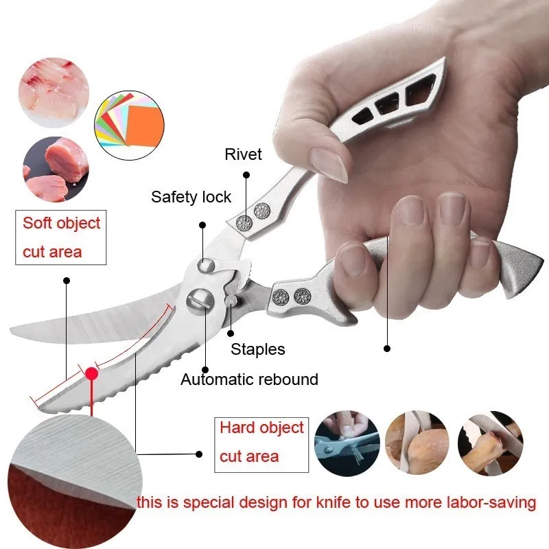 مقص مطبخ متعدد الوظائف من الفولاذ المقاوم للصدأ