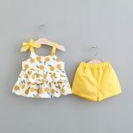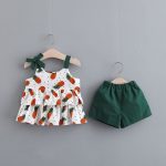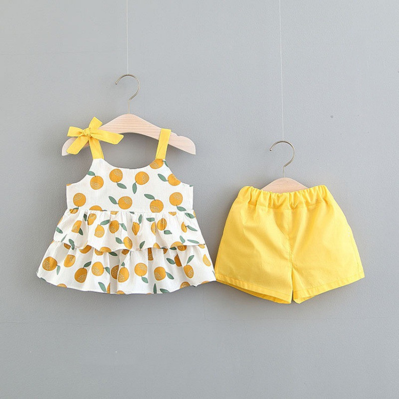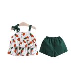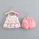ملابس أطفال بنات، طقم بدون أكمام مكون من قطعتين: بلوزة وشورت