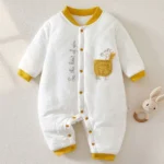 ملابس أطفال رضع من قطعة واحدة بأكمام طويلة وطبعة حيوانية من القطن السميك والدافئ في الشتاء ملابس حديثي الولادة من عمر 0 ​​إلى 3 أشهر، رومبر للبنات في المستشفى