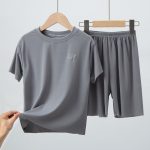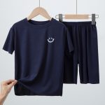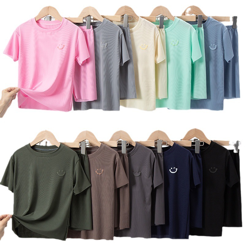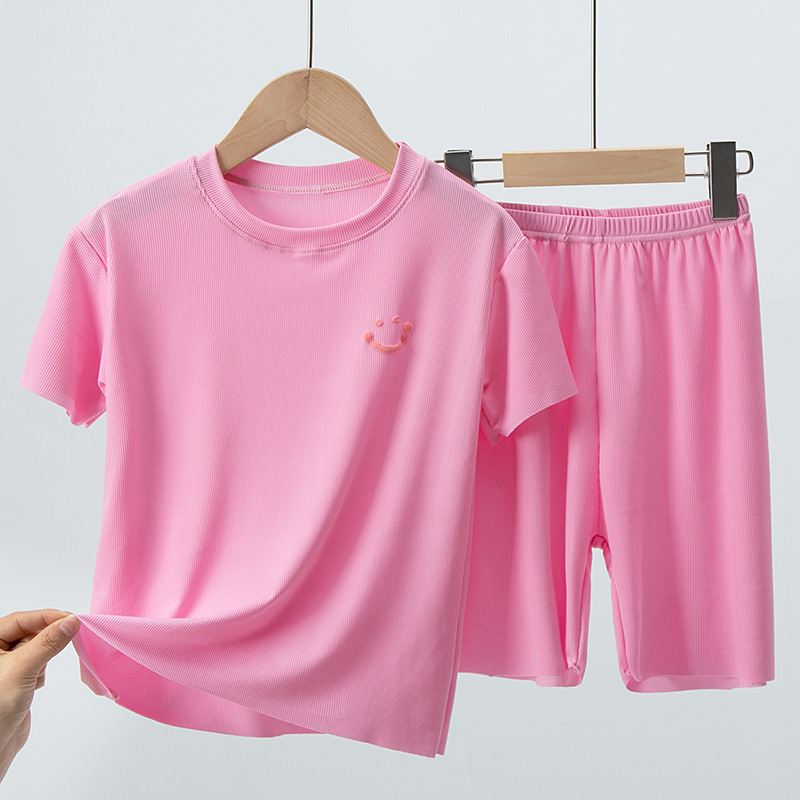 ملابس أطفال قصيرة الأكمام مصنوعة من حرير الثلج الرقيق، مناسبة للاستخدام المنزلي مع مكيفات الهواء.