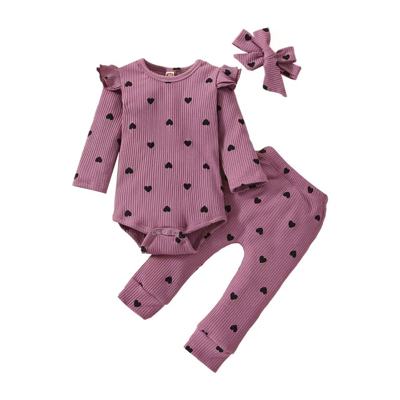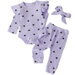 ملابس الأطفال الرضع بقبعات مزينة بفيونكات مطبوعة