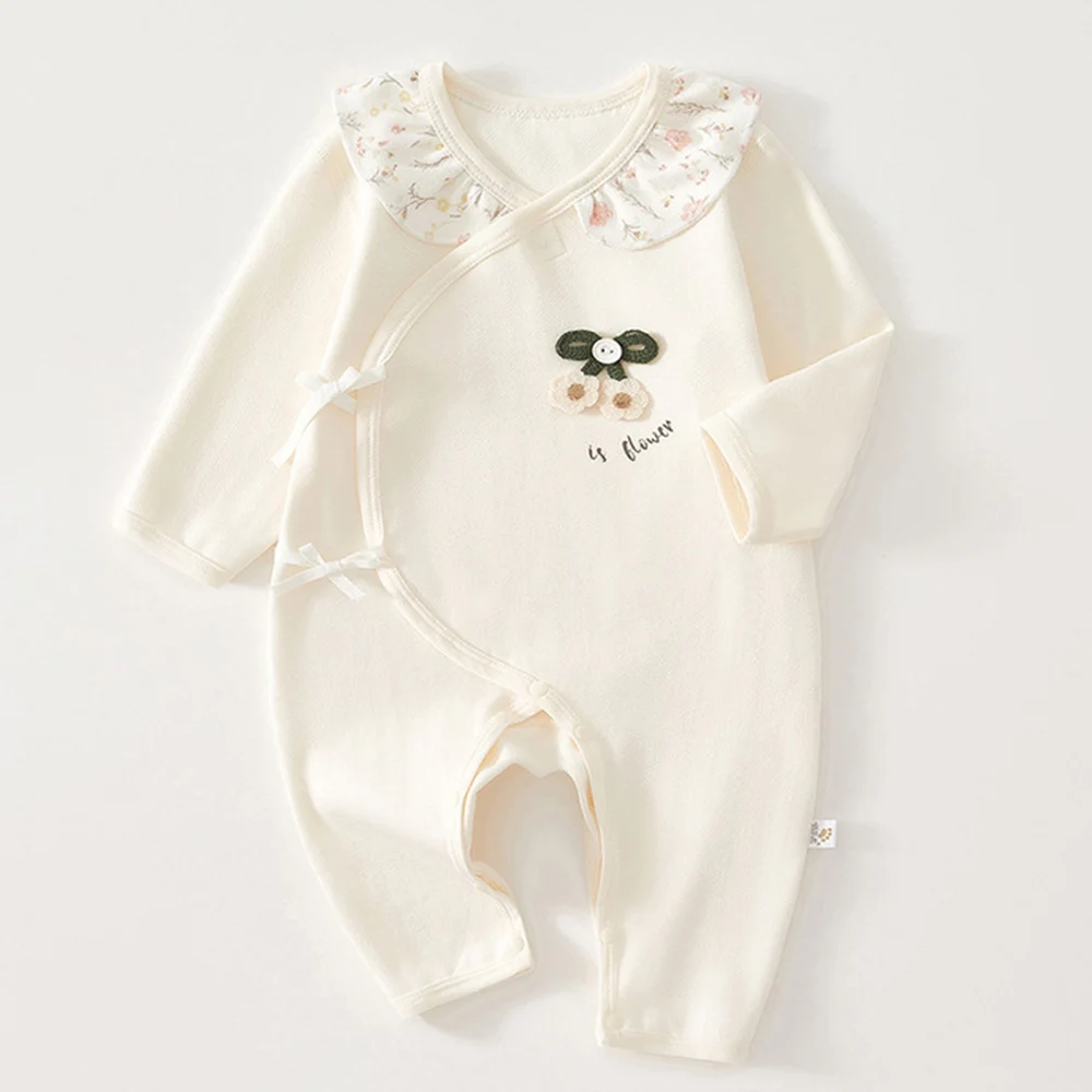 ملابس بنات حديثي الولادة من القطن لفصل الربيع والخريف، رومبير بأكمام طويلة، ملابس عيد الميلاد الأول للرضع من عمر 0 إلى 6 أشهر، جمبسوت