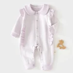 ملابس عيد الشكر للبنات الرضع من القطن، رومبير عيد الميلاد بأكمام طويلة، كشكشة، ياقة بيتر بان، جمبسوت خريفي للأطفال الرضع