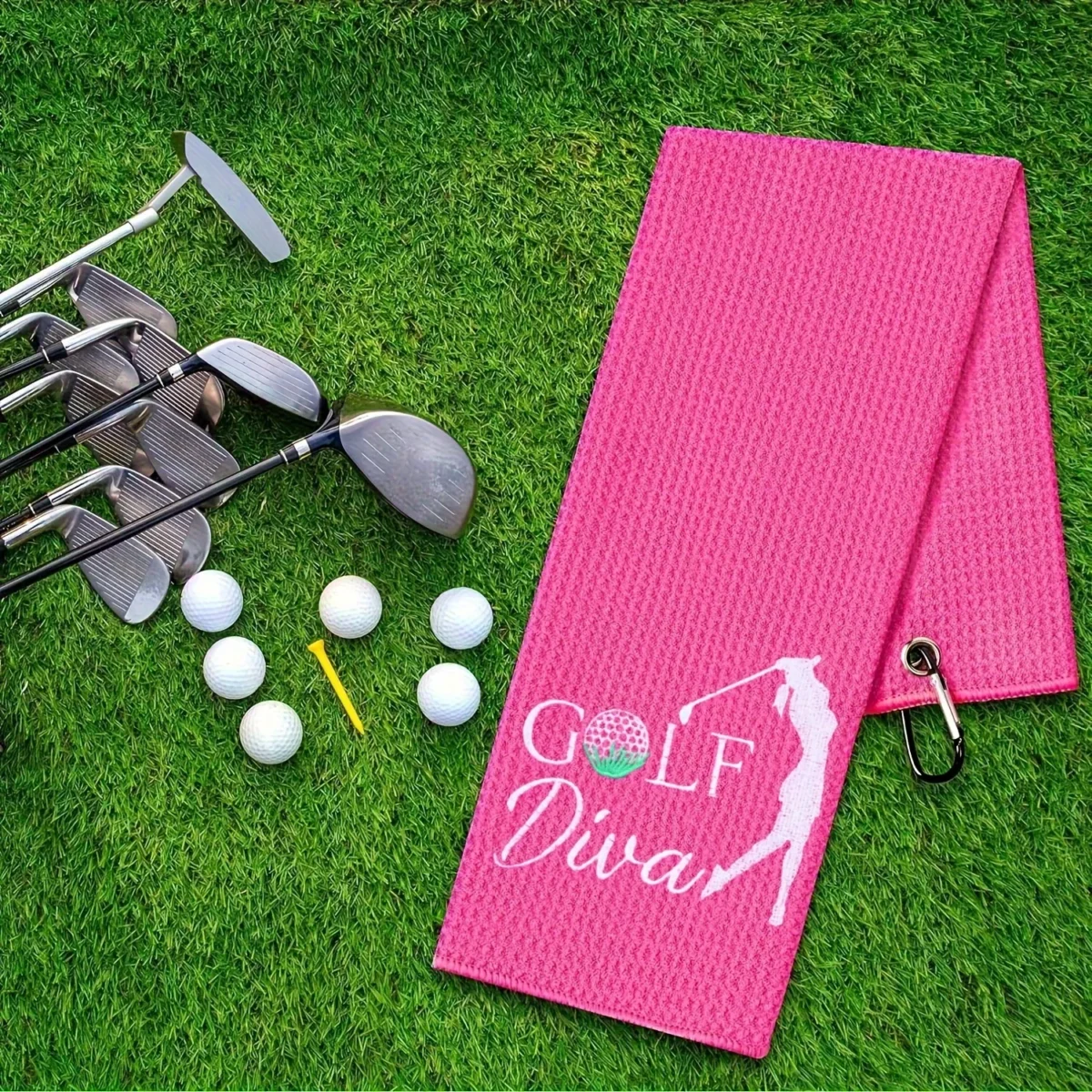 ١٦ × ٢٤ بوصة (٤٠ سم × ٦٠ سم) – حلقة تثبيت ثلاثية الطي في المنتصف – مشبك كاربين متين – مناشف جولف مثالية لحقائب الجولف! منشفة كرة الجولف هدية جولف رائعة!
