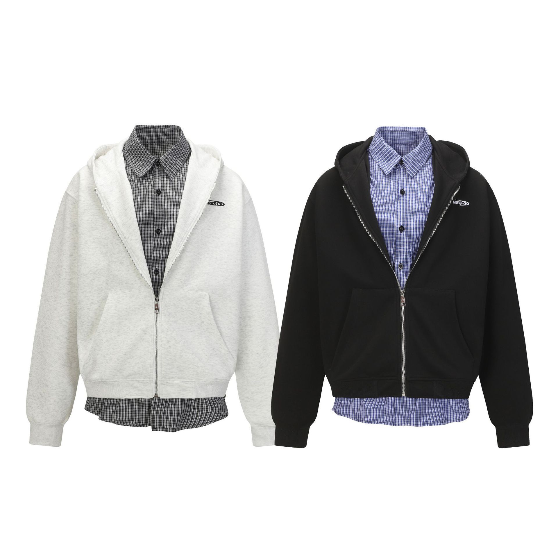 هودي رجالي أمريكي الطراز بنقشة مربعات وهمية من قطعتين