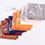 وشاح حريري ساتان ثنائي اللون بنقشة بيزلي – وشاح رقبة صغير بنقشة الكاجو للنساء بطول ٧٠ سم | إكسسوارات أزياء بالجملة