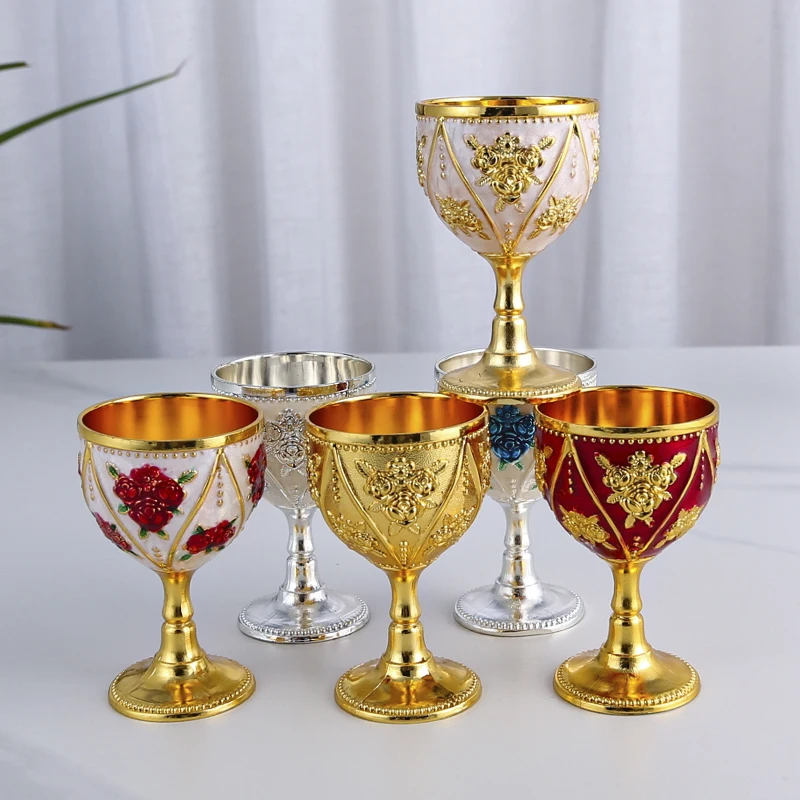 1 كوب نبيذ أبيض منقوش عليه وردة معدنية،