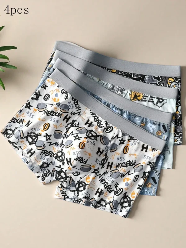 4 قطع ملابس داخلية بوكسر للرجال بلون سادة