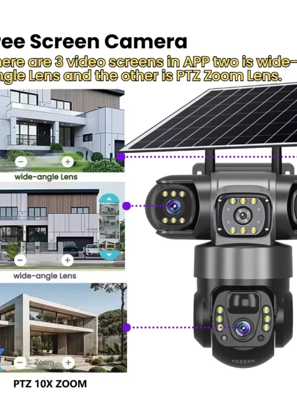 LS VISION V380 Pro 3 عدسة IP كاميرا تعمل بالطاقة الشمسية 4G 15 ميجا بكسل واي فاي خارجي مقاوم للماء CCTV رؤية ليلية كاميرا صوتية ثنائية الاتجاه تتبع الذكاء الاصطناعي