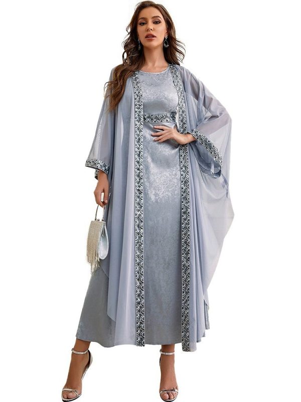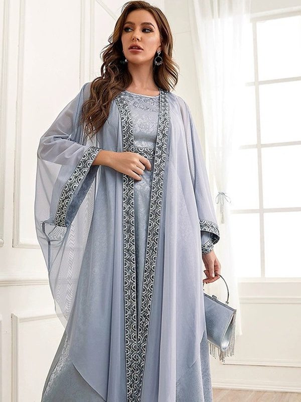 فستان طويل نسائي مسلم عباية بدلة من قطعتين