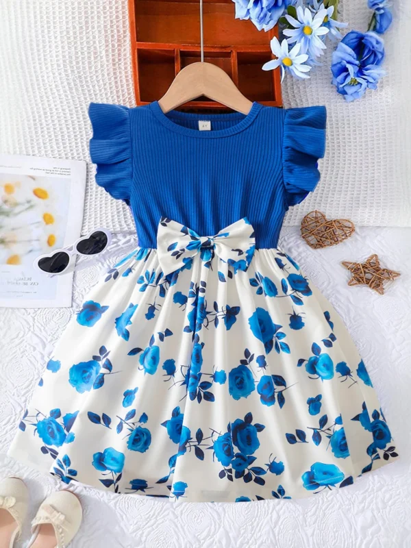 Girls’ Butterfly Summer Dress – Rose Print Ruffle Outfit (Ages 2–8)