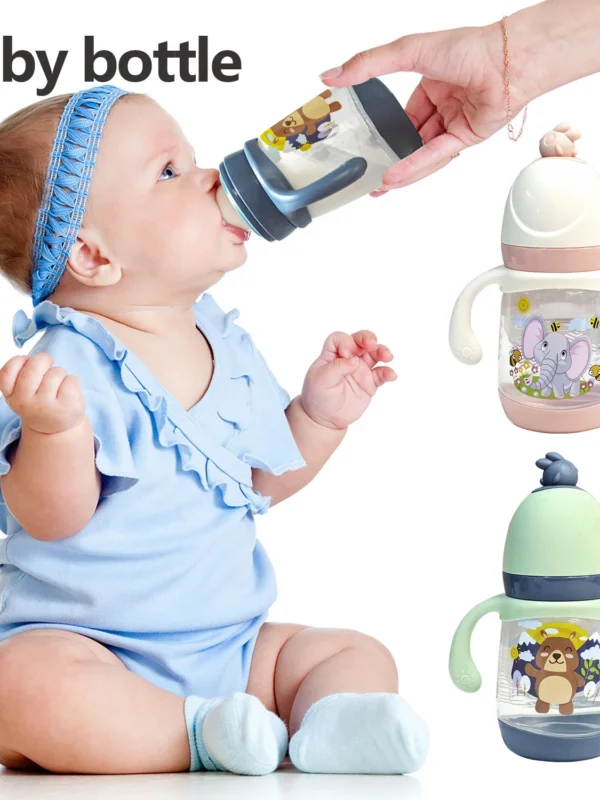 240ML Cartoon Baby Bottle – BPA-Free Drop-Proof PP Feeding Bottle for Newborns