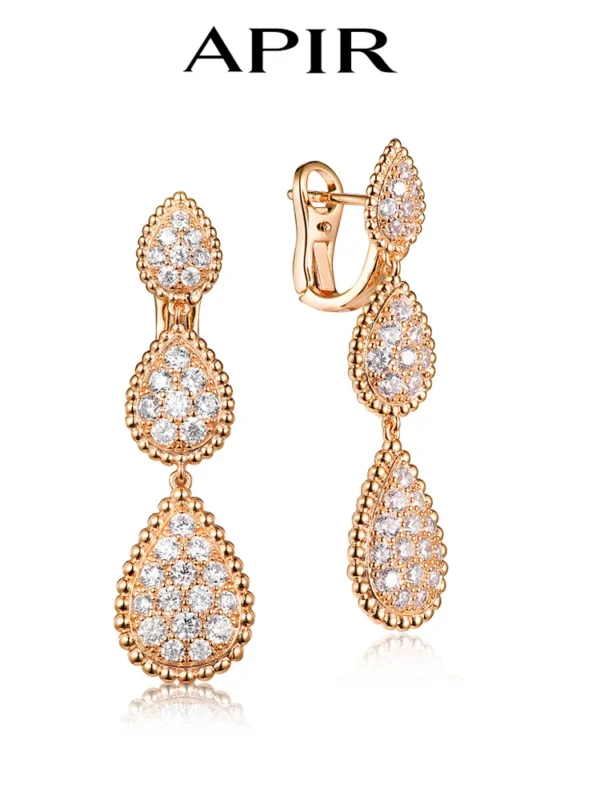 APIR Vintage Water Drop Earrings – Gold-Plated Zircon Clip-Ons for Parties & Weddings