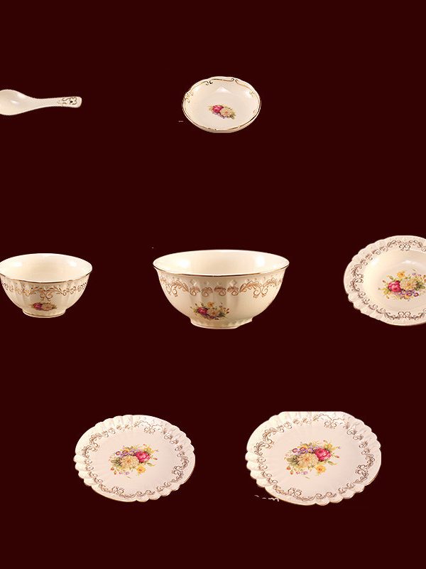 Water-painted Gold-rimmed Tableware Set Plates And Bowls In Bulk