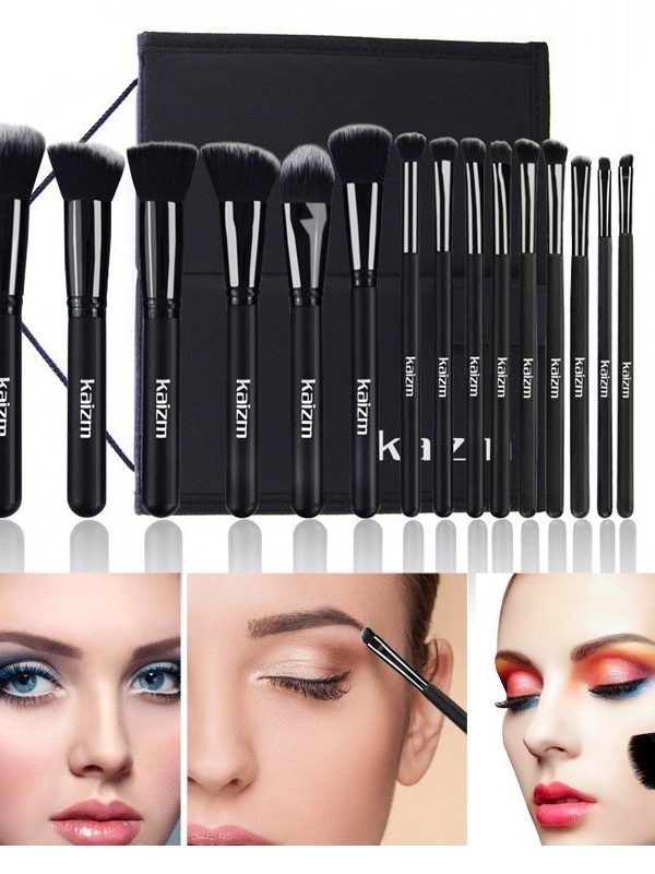 15 Makeup Brushes Set Black Cosmetic Brush Full Set