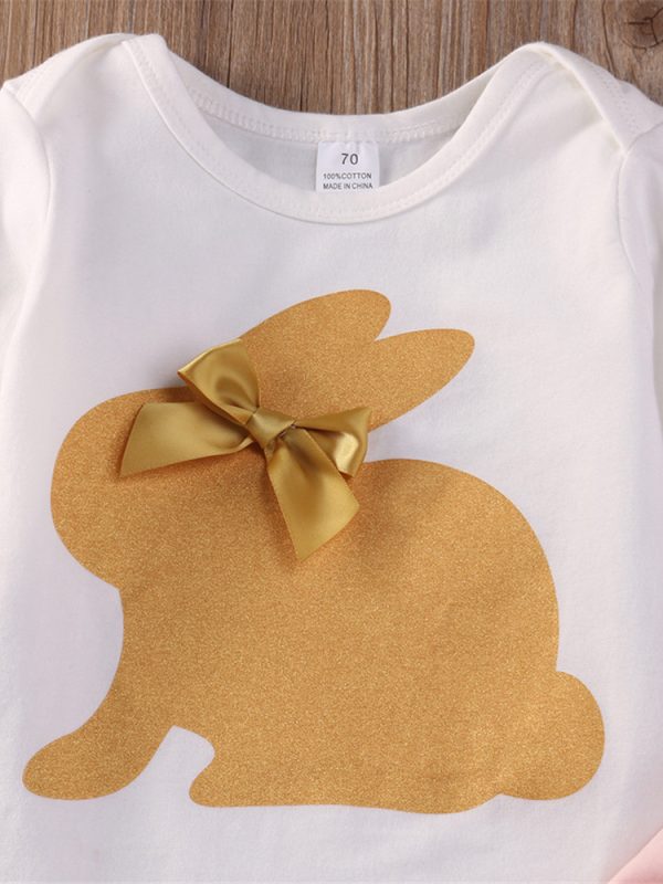 Baby Bunny Romper With Bowknot Lace Trousers Headband