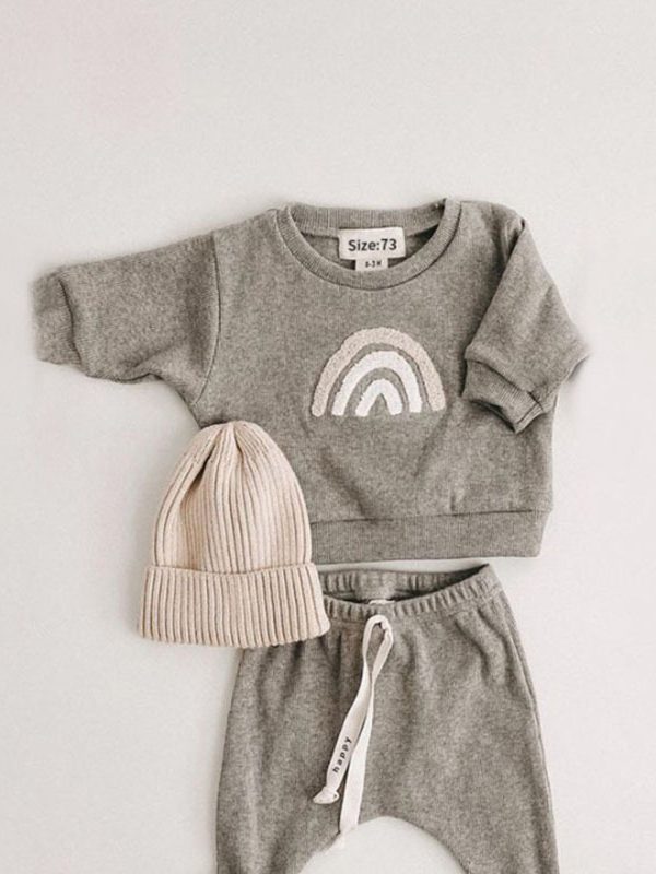 Baby Cartoon Fashion Sun Rainbow Letter Sweatshirt Pants Set