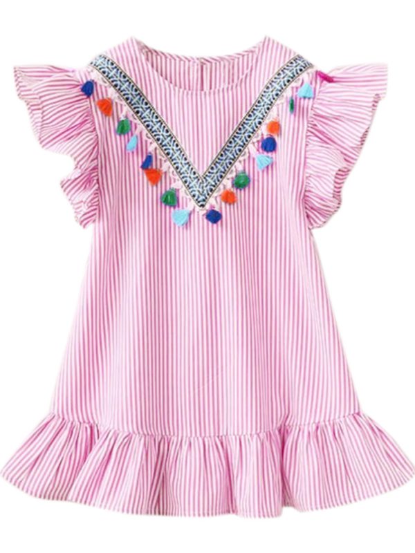 Fringed vertical stripe ruffle dress