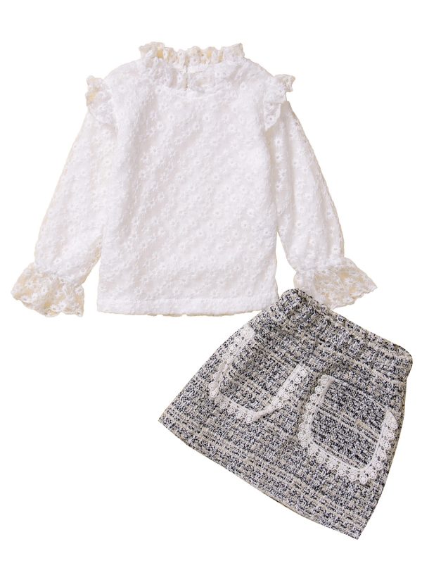د.إ 45,10Girls Lace Top Houndstooth Skirt Set