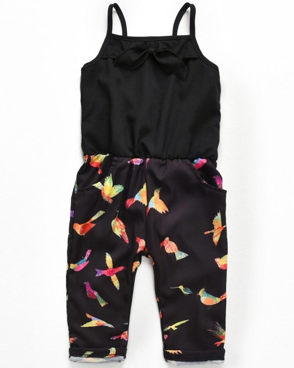 Girls’ Black Printed Jumpsuit