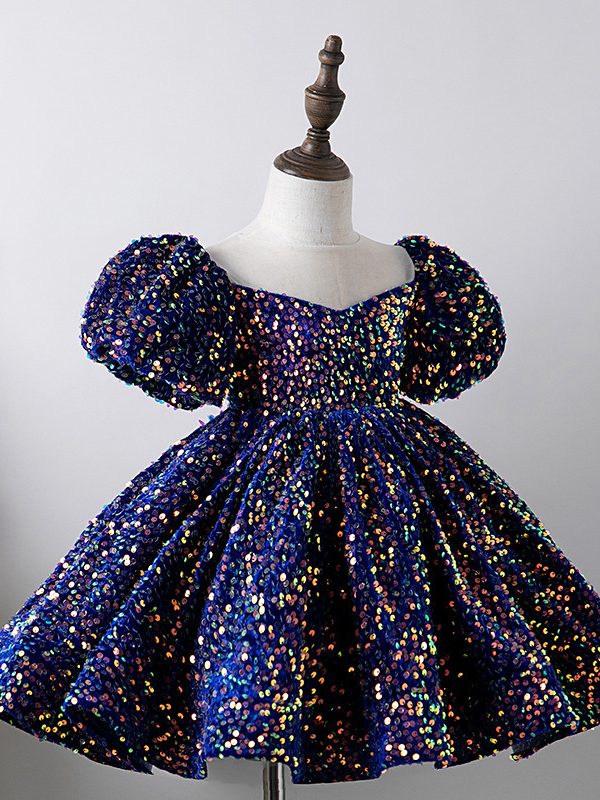 Bubble Sleeve Princess Dress Sequined Western Style Baby Girl Birthday Party Girl Costume