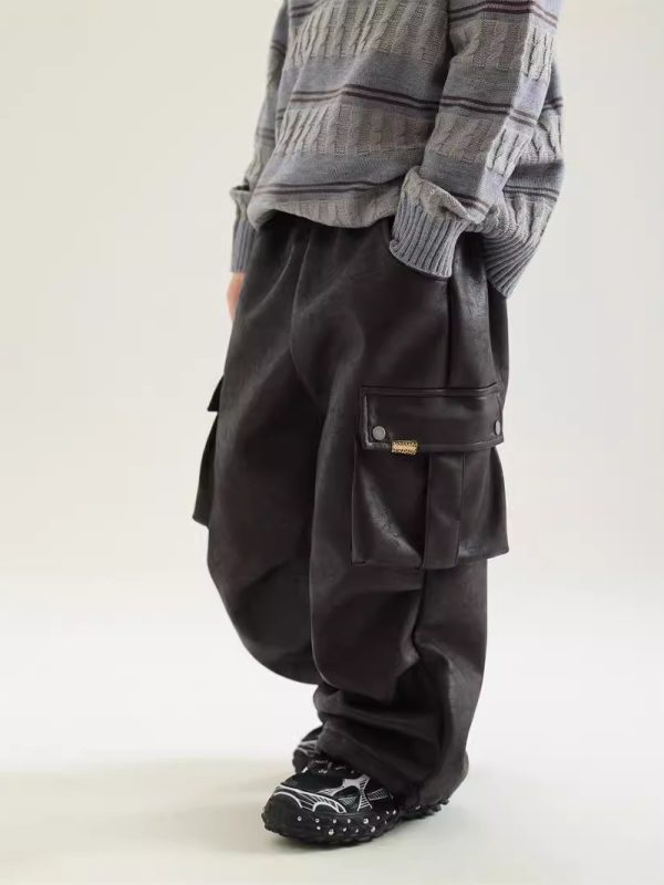 Boy Winter Fleece Lining Workwear Leather Pants