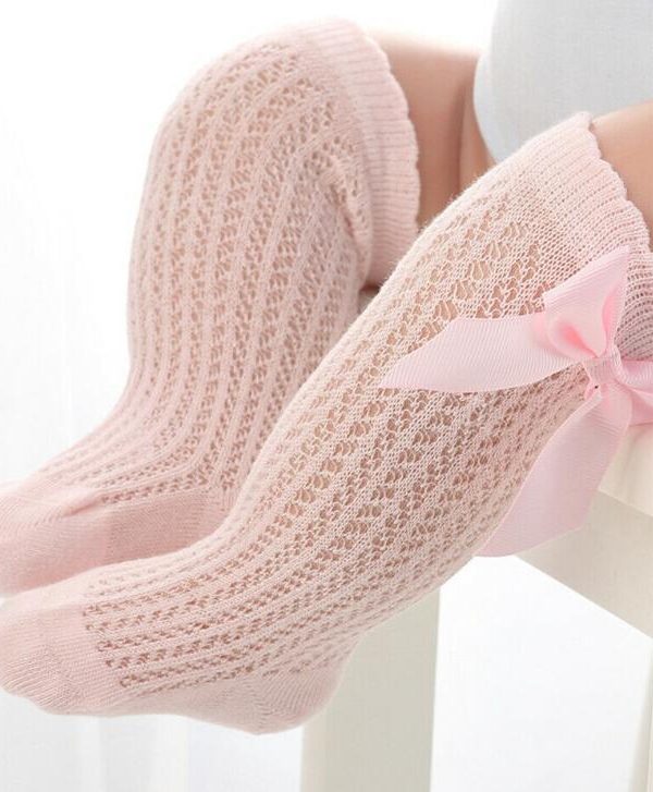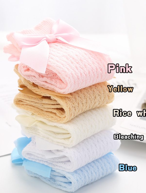 Baby Infants Kids Toddlers Girls Boys Knee High Socks Tights Leg Warmer Ribbon Bow Solid Cotton Stretch Cute Lovely