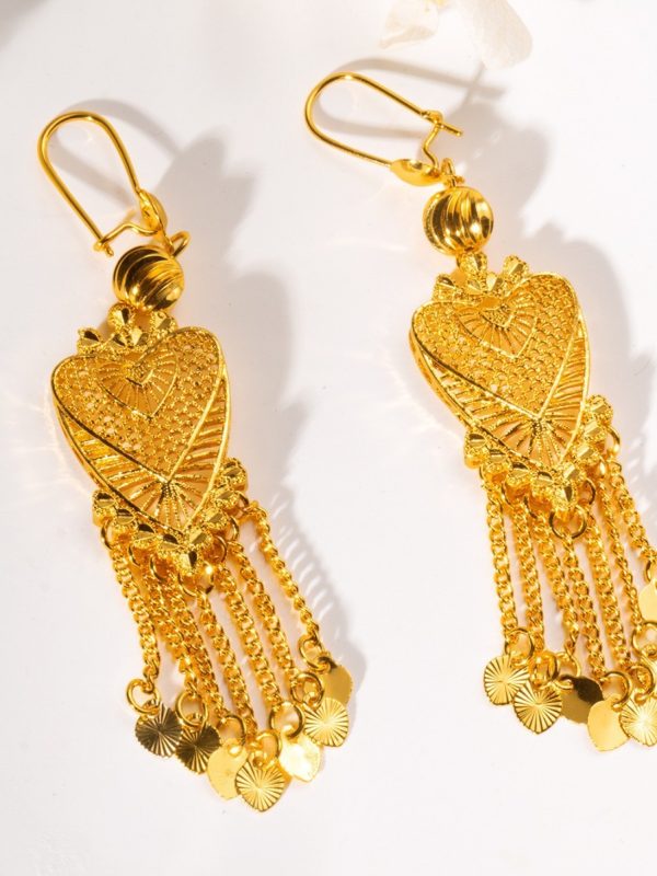 Hollow Heart-shaped Tassel Long Brass Women’s Earrings Retro