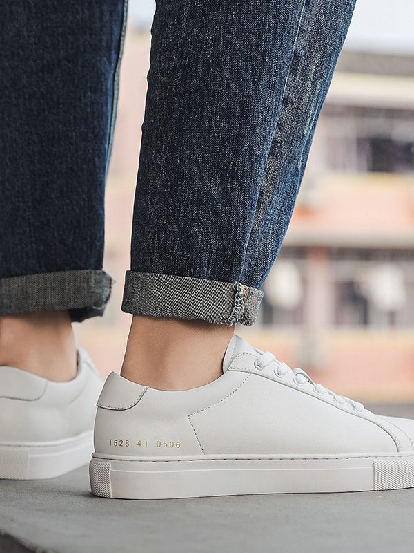 Mrxmus Dutit Men’s Leather Casual Sneakers – 2023 Summer Fashion, Solid Color, Versatile White Shoes