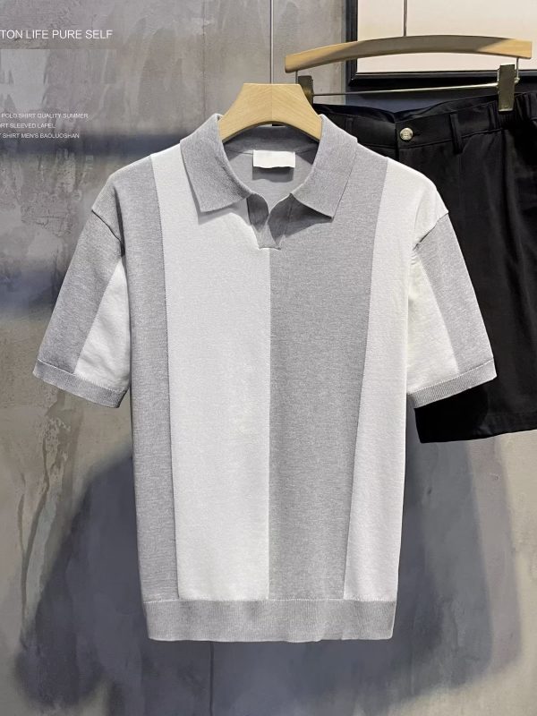 Design Light Luxury Contrast Color Knitted Striped Short Sleeve