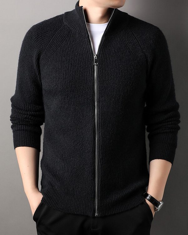 Mens Casual All-match Stand-up Collar Cardigan Sweater