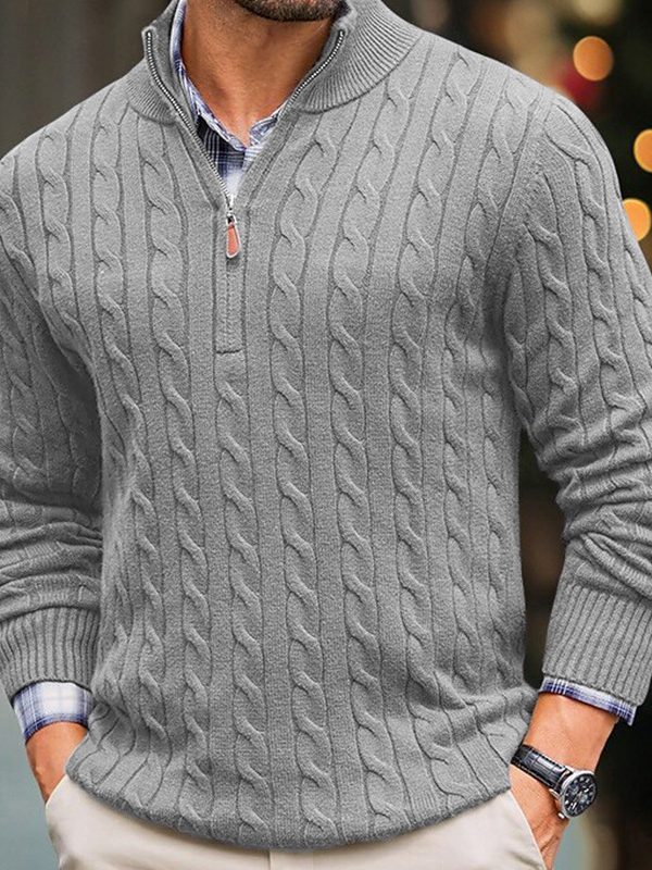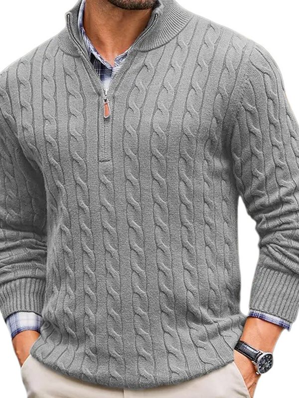 Mens Retro Stand-Up Collar Pure Wool Sweater