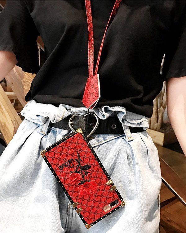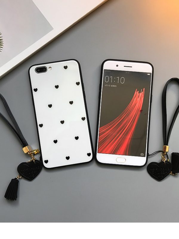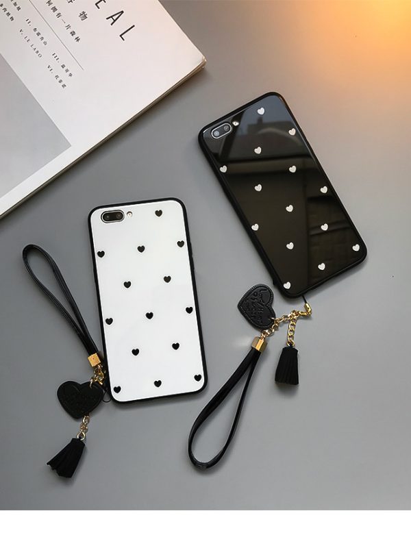 Compatible with Apple , Love Dot Mobile Phone Case With Lanyard Glass Case