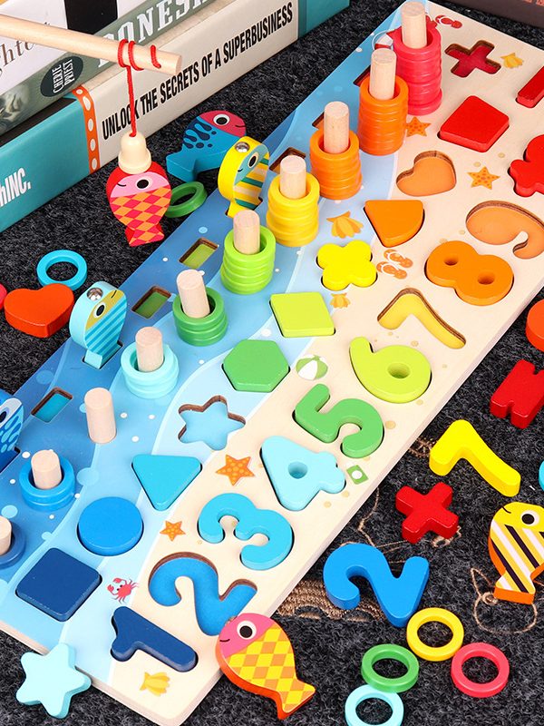 Educational Wooden Toys for Kids Board Math Fishing Count Numbers Matching Digital Shape Match Early Education Toy