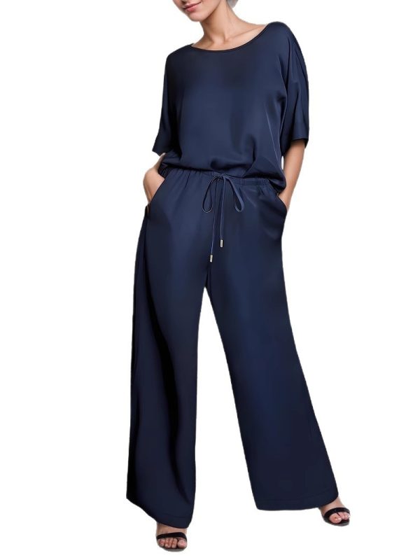 Casual Short-sleeve Top And Drawstring Wide-leg Pants Set