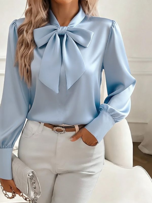 Bow-tie Blouse Fashion Commuting Lace-up Pullover Long-sleeved Top Women’s Clothing