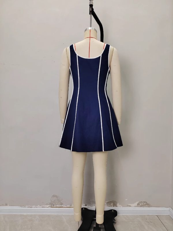 Simple Solid-Color Womens Single-Breasted Lapel Sleeveless Slim-Fit Dress