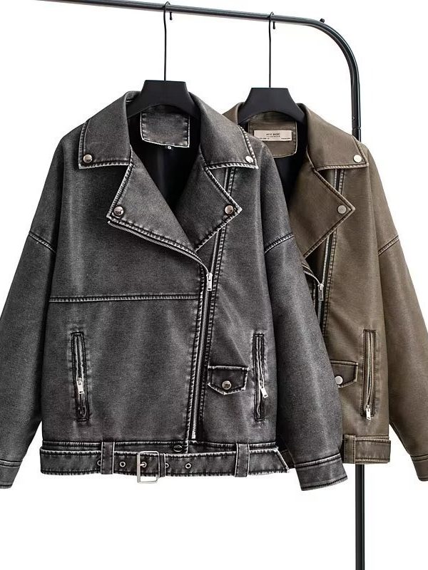 د.إ 27,50Fashion Brown Motorcycle Leather Coat Women