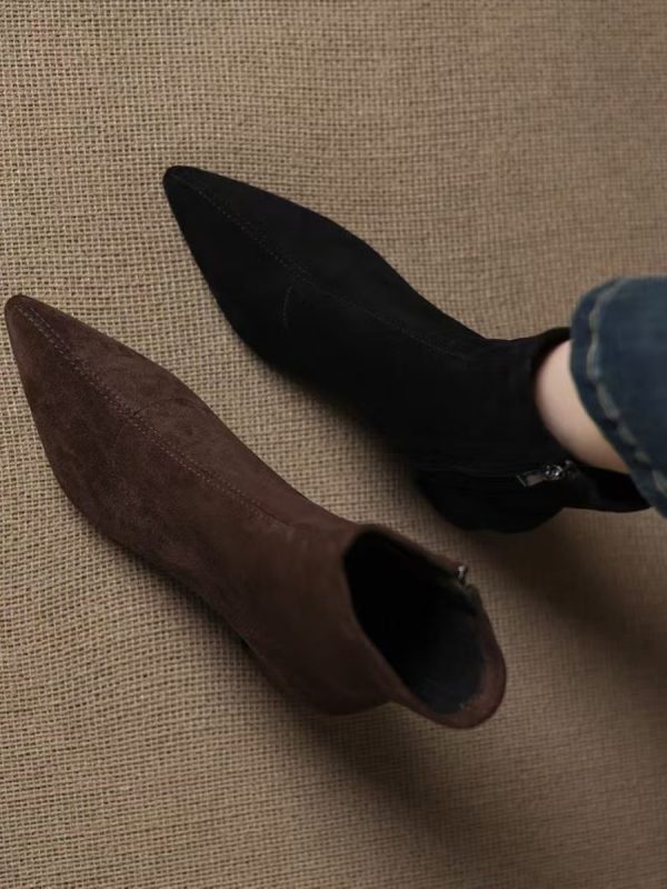 Suede Ankle Boots With Mid Heel