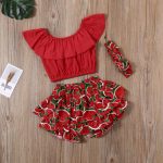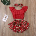 1-6T Baby Girls Ruffle Top Set Watermelon Shorts And Headband Pants Summer Clothes