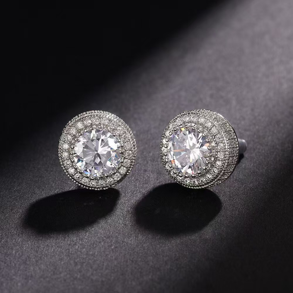 1 Pair Hip Hop Wedding Zircon Stud Earrings,Sparkling,Unisex,Daily Accessories And Women’s Jewelry
