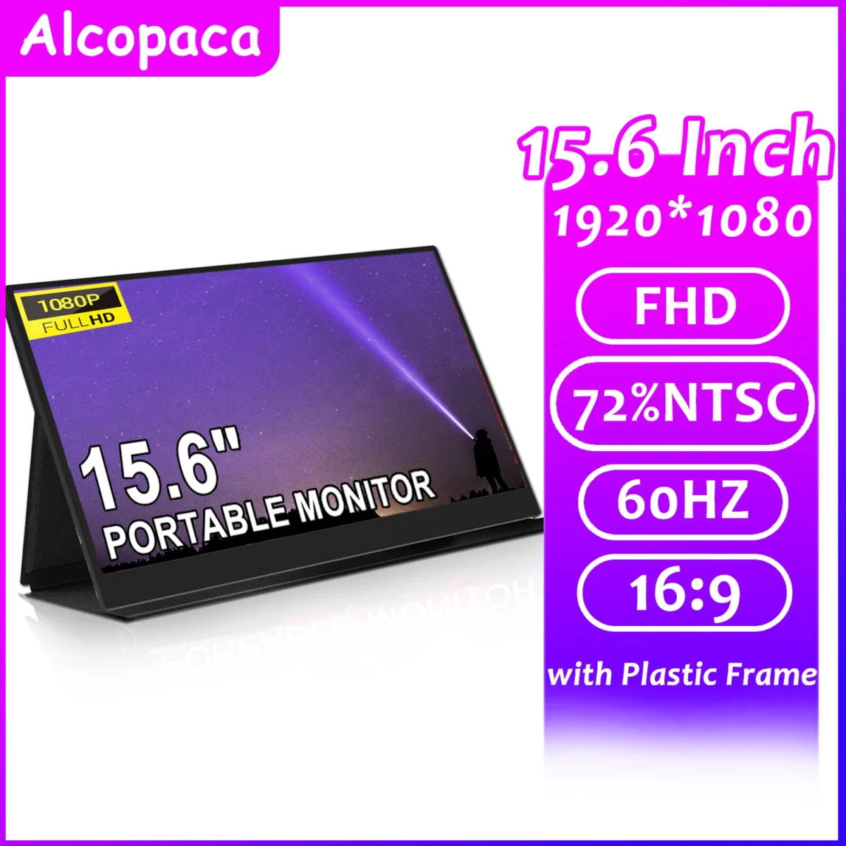 15.6-inch Portable Monitor 1920*1080 60HZ For Laptop XBOX PS4 / 5 Switch TV Box Mobile Phone PC Extension With Plastic Frame