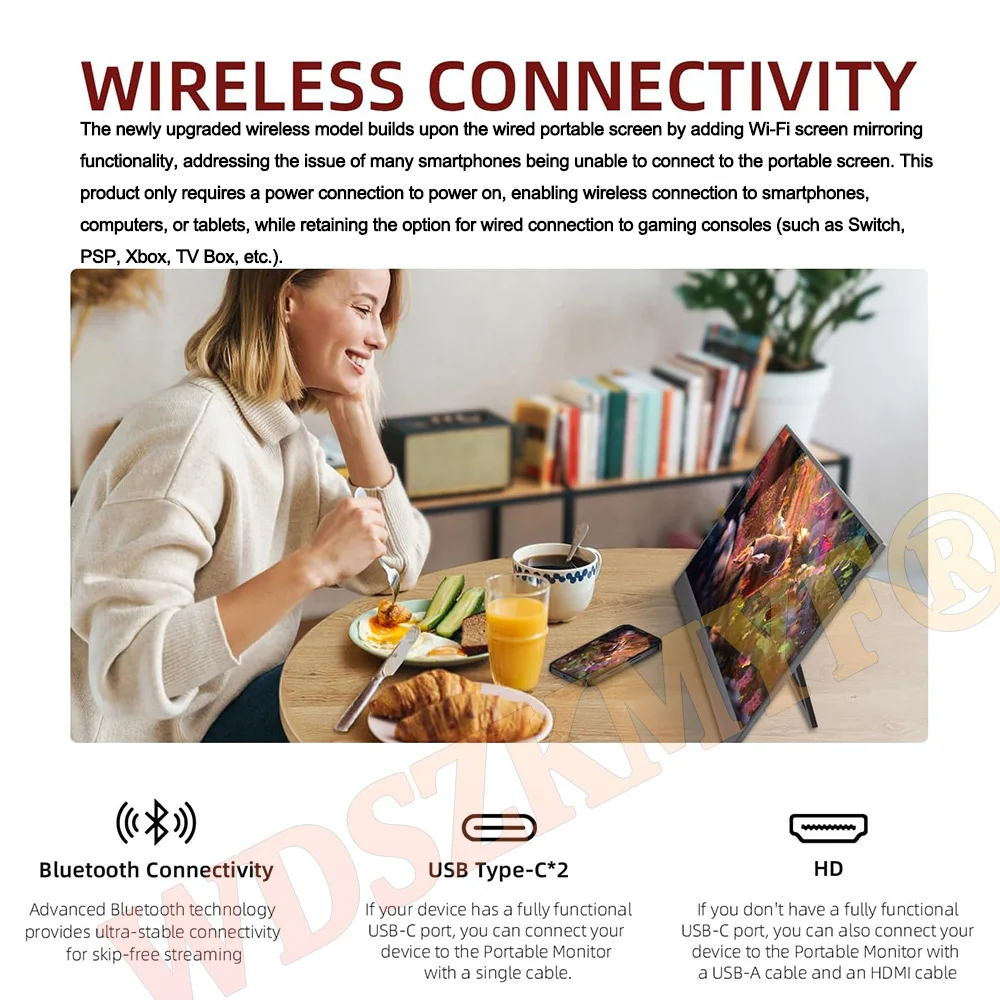 18.5”15.6“ Portable Wireless/Wired Monitor 1080P IPS External Second Screen for Laptop PC Cell PHONE Switch Xbox PS4/5 Xbox