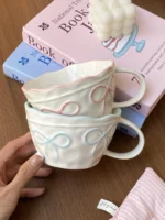 1Pc Bow Ceramic Mug, Exquisite and Simple Bow Large Capacity Couple Cup, Suitable for Home Decoration, Home Drinking Water, Candlelight Dinner, Coffee Latte Flower Cup, Holiday Gift, Exquisite Gift