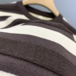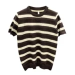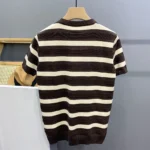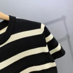 2024 Korean Black and White Striped Knit Short Sleeve Round Neck Summer Trend Fashion Hipster Ice Silk T-shirt Men’s Body Shirt